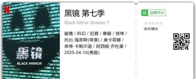 《黑镜(第七季)》分有《凡夫俗女》《黑色野兽》《忆录集》《玩物》《白日梦饭店》《联邦星舰卡里斯特》等6集,预告片充满了科技感和未来感,但愿能好过7.1分的上一季。